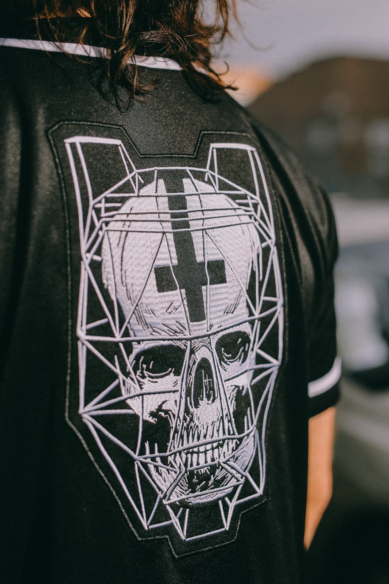 Embroidered back Welcome To Our Church skull design