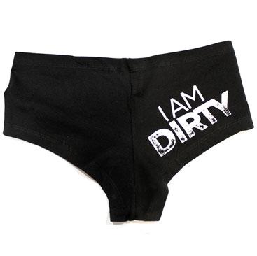 Dirtyphonics Premium Hot Shorts feature cotton/spandex jersey (95% Cotton / 5% Elastane) construction, matching panty liner and are form-fitting. Featuring a front 'I Am Dirty" print.