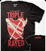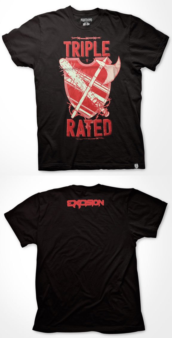 EXCISION "Triple Threat" T-Shirt's are printed on premium, super soft, fine jersey tee's and feature a large front print, back neck print, and inside neck print.