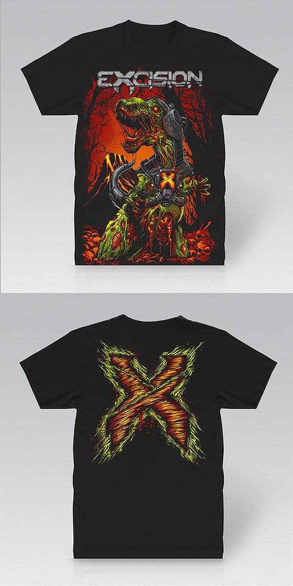 EXCISION "ZombieRex" T-Shirts are printed on premium, super soft cotton tees and feature a front and back print!