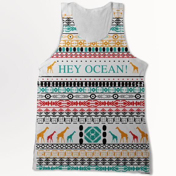 HEY OCEAN "Hieroglyphic" Tank Tops are printed on unisex, loose fitting, cotton tanks and feature a large front, "all-over" print.