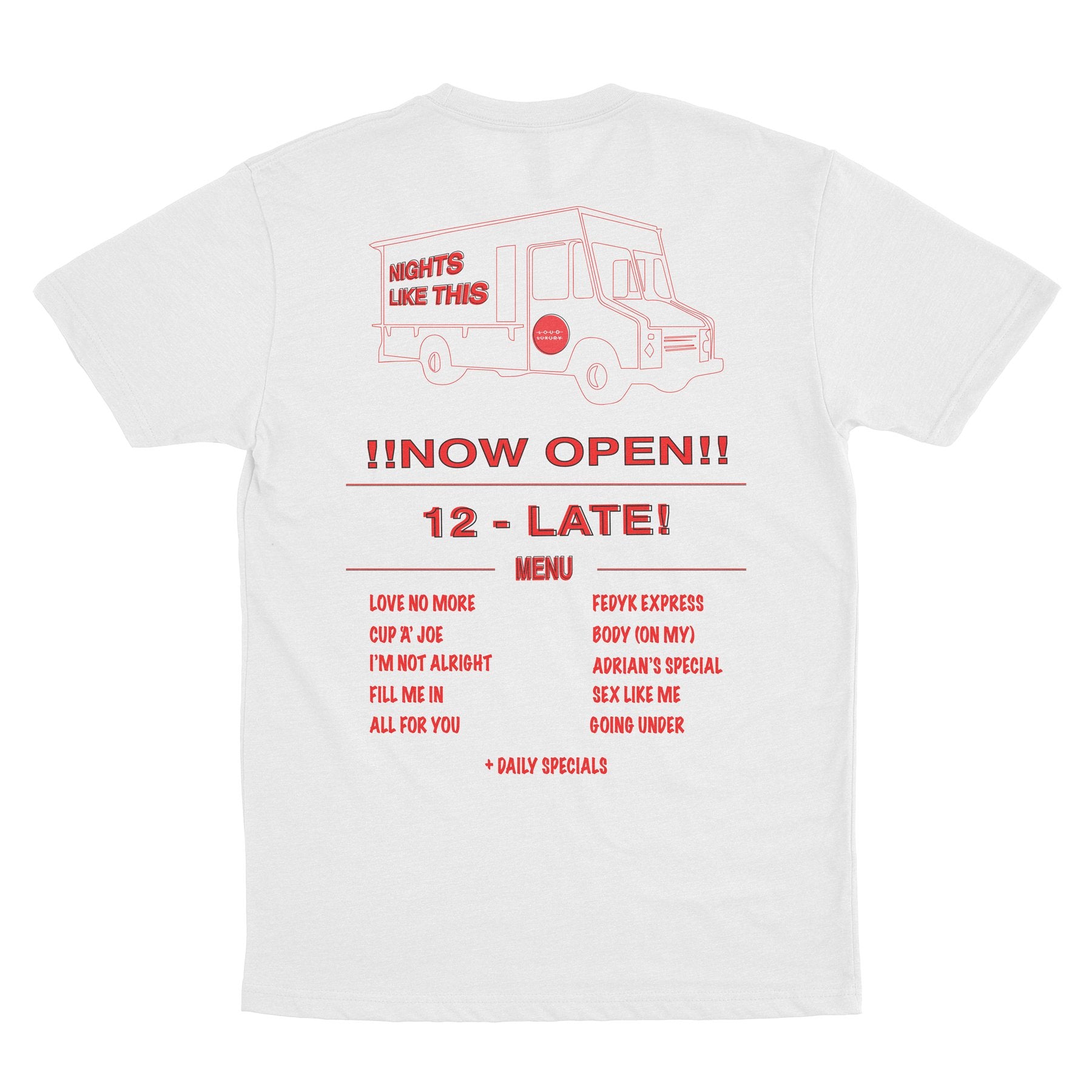 Loud Luxury 'Taco Truck' tees printed on premium, 100% cotton, unisex shirts and feature a front and back print.