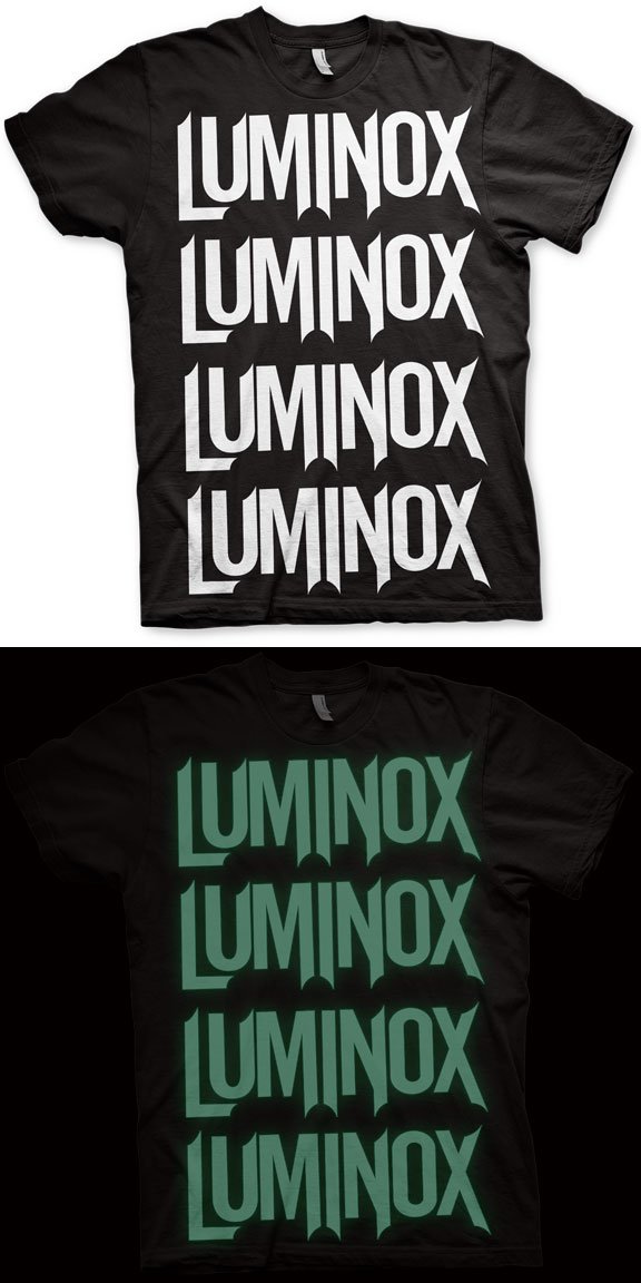 LUMINOX "Stacked" T-Shirts are printed on premium, super soft, fine jersey cotton tees and feature a glow in the dark front print.