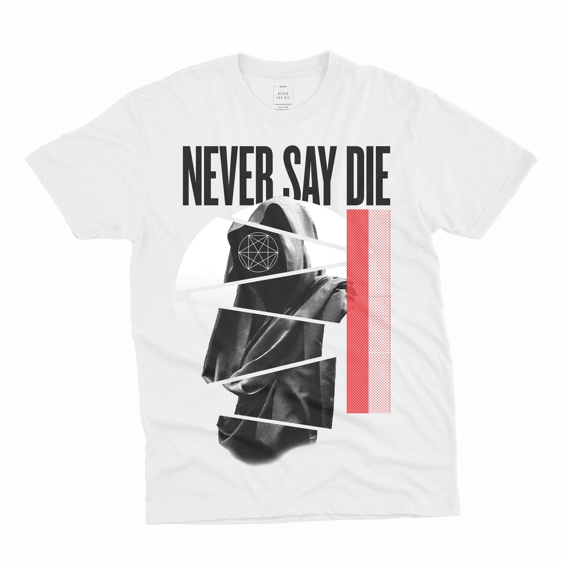 NSDR "Cloak" tees are printed on premium, soft jersey cotton t-shirts and feature a large front print, and back neck print.