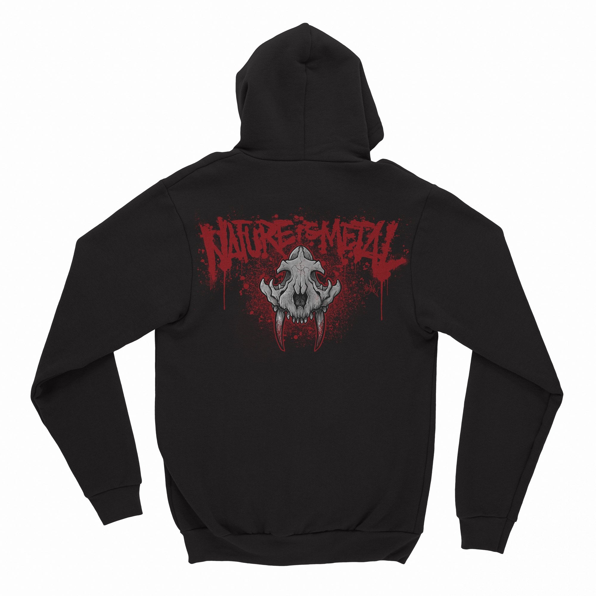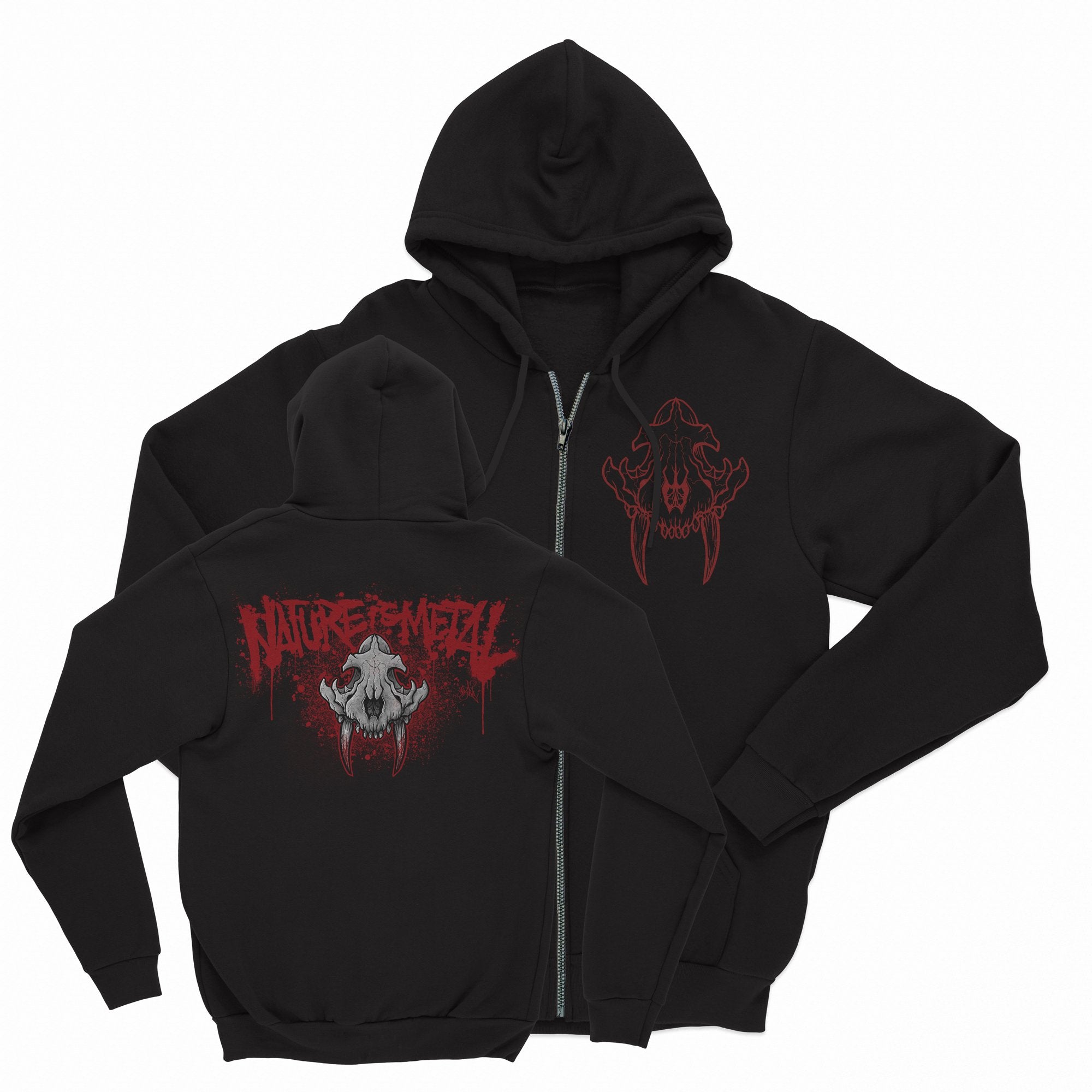 Nature Is Metal "Smilodon" hoodies are printed on heavy cotton, durable zip up sweatshirts and feature a front and back print.