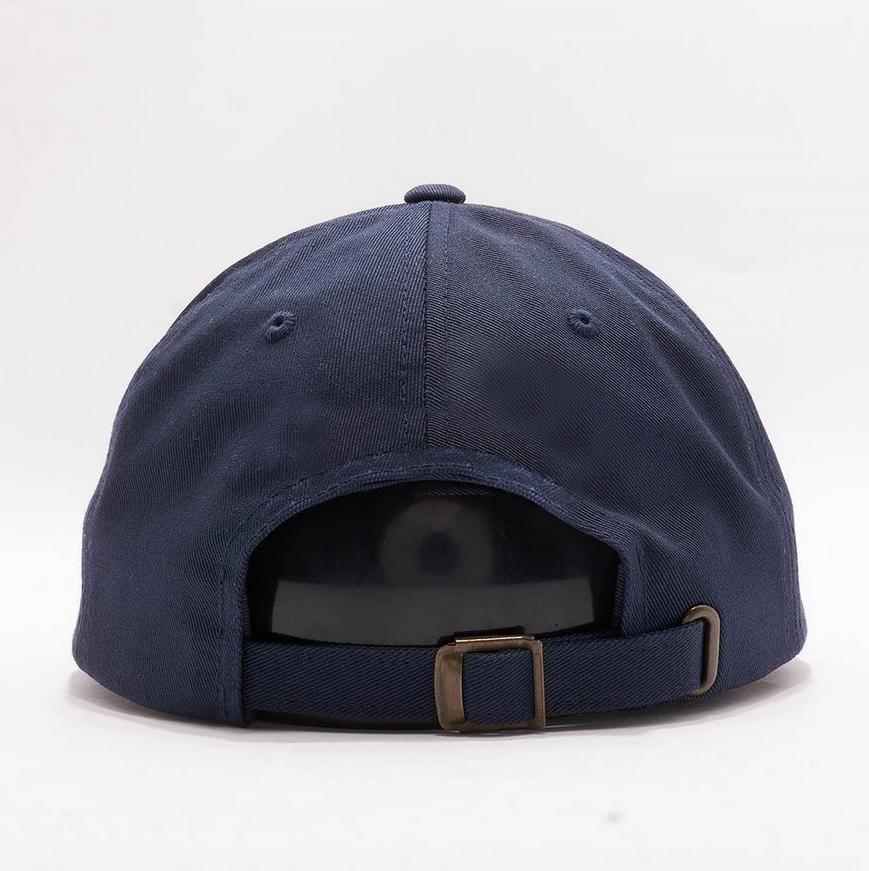 Prozzak dad caps feature an extra low profile, antique brass buckle closure, matching undervisor. Unstructured for classic, elegant style, with a front embroidery.