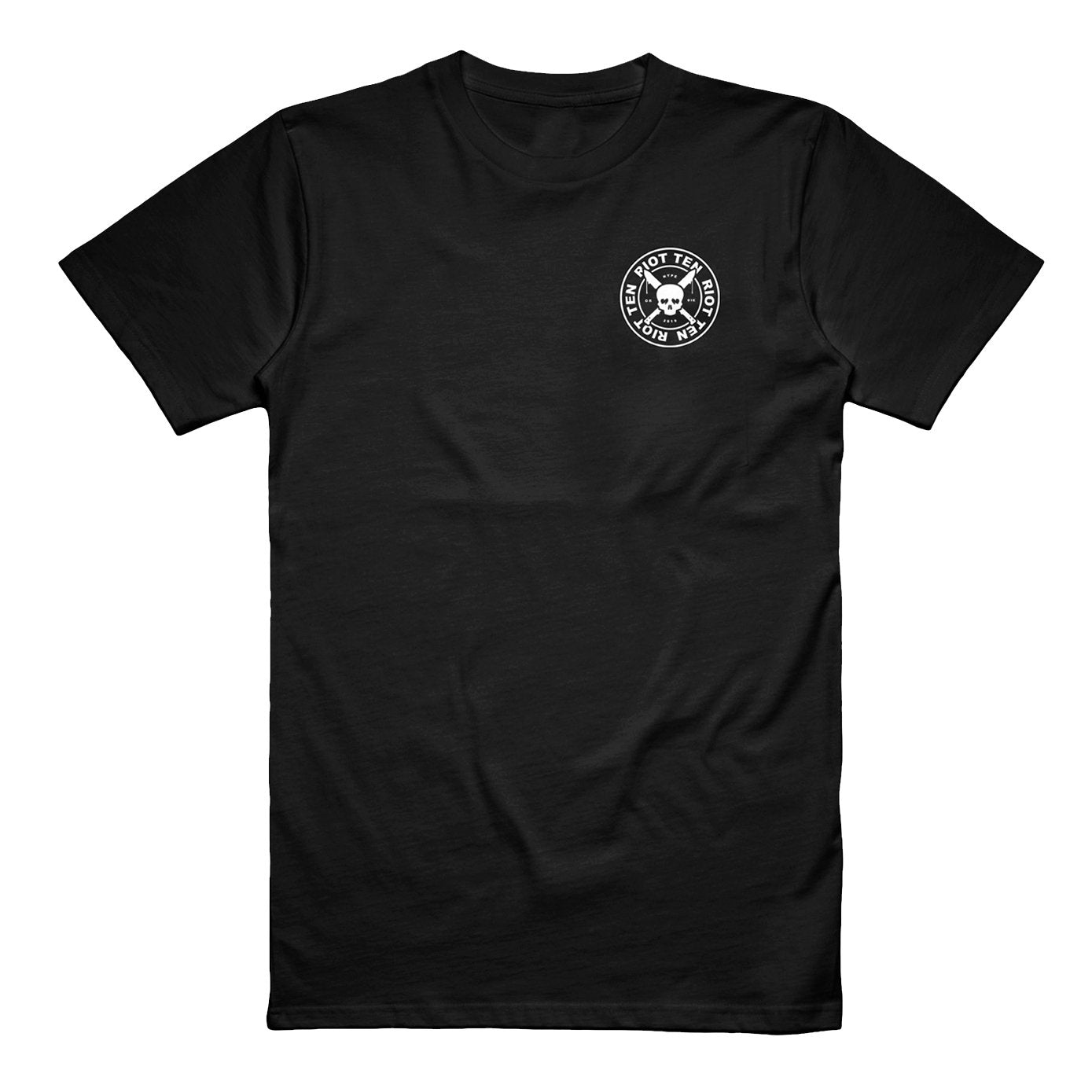 Riot Ten 'Skull and Dagger' t-shirts. Front and back print on a premium, soft cotton shirt.