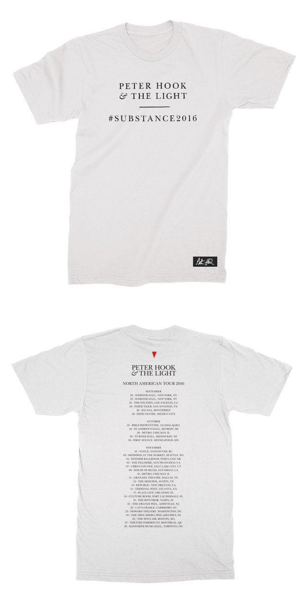 Peter Hook & The Light "Substance" T-Shirts are printed on premium, cotton tees and feature a front and back print.