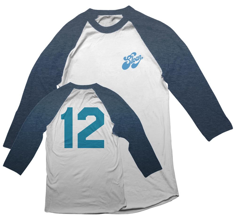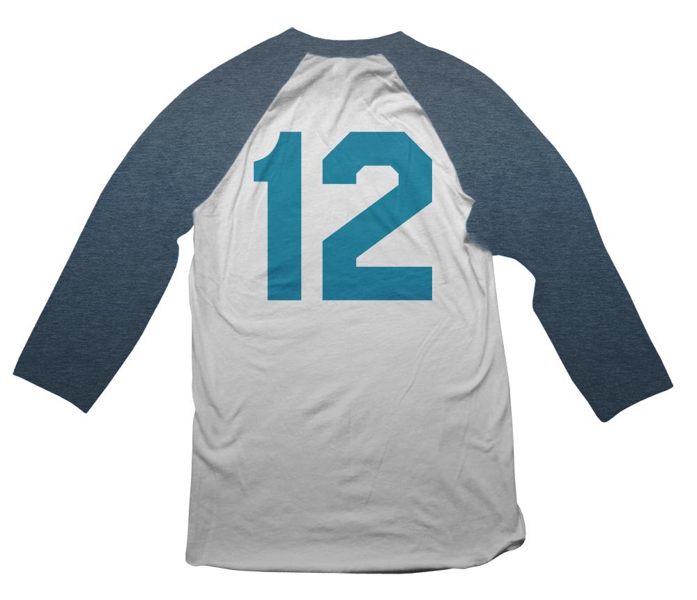 SLOAN "12" baseball raglans are printed on super soft, vintage inspired, heather denim / white 3/4 sleeve shirts and feature a front and back print.