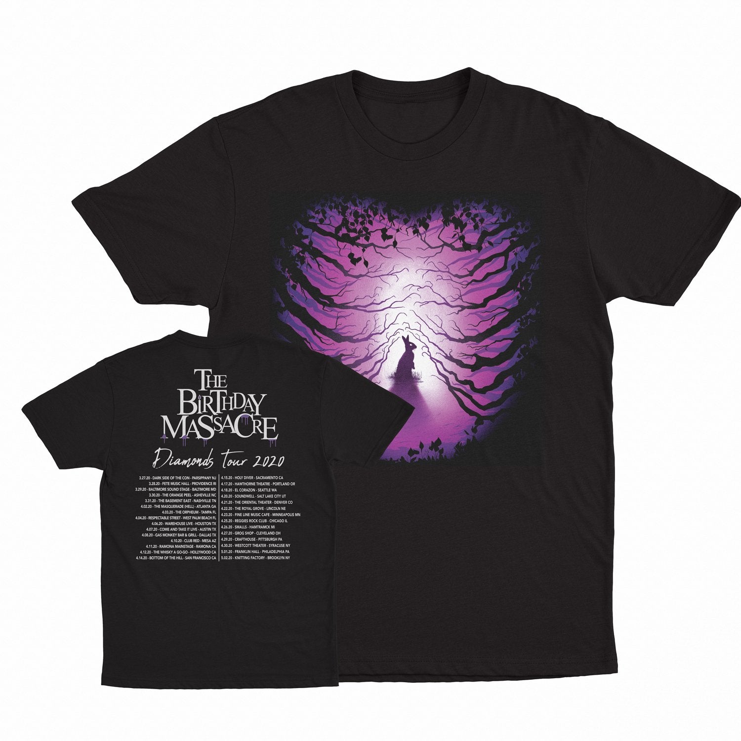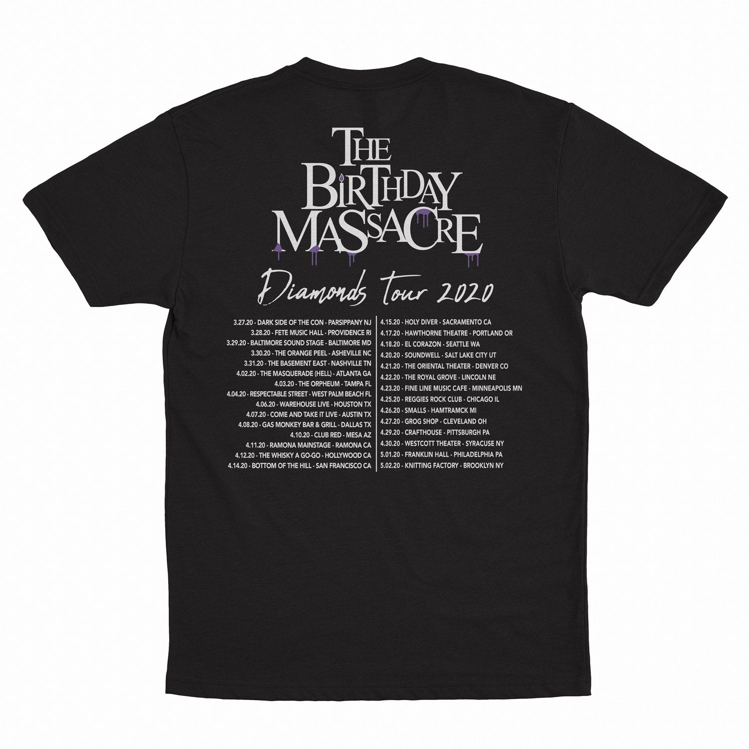 The Birthday Massacre "2020 Diamonds Official Tour" T-Shirts are printed on premium, super soft, unisex fine jersey cotton tees and feature a front and back print.